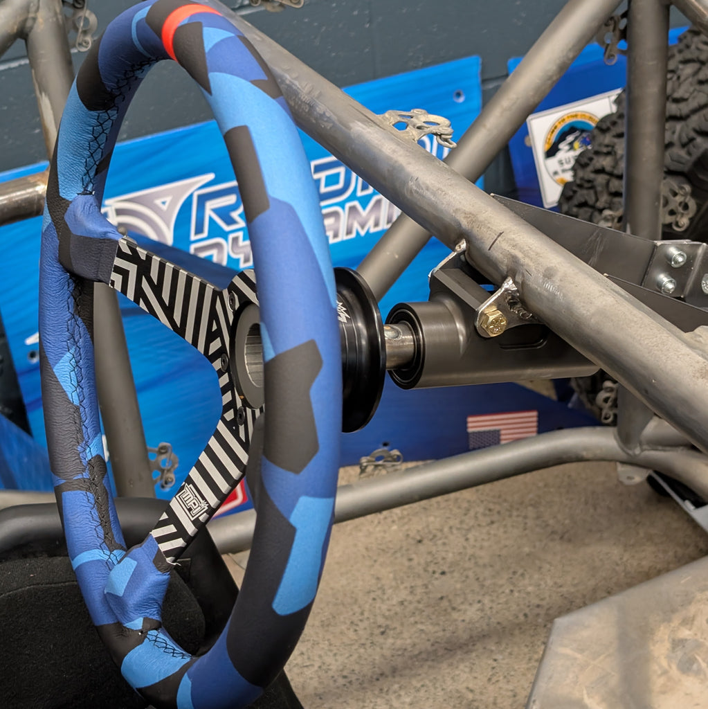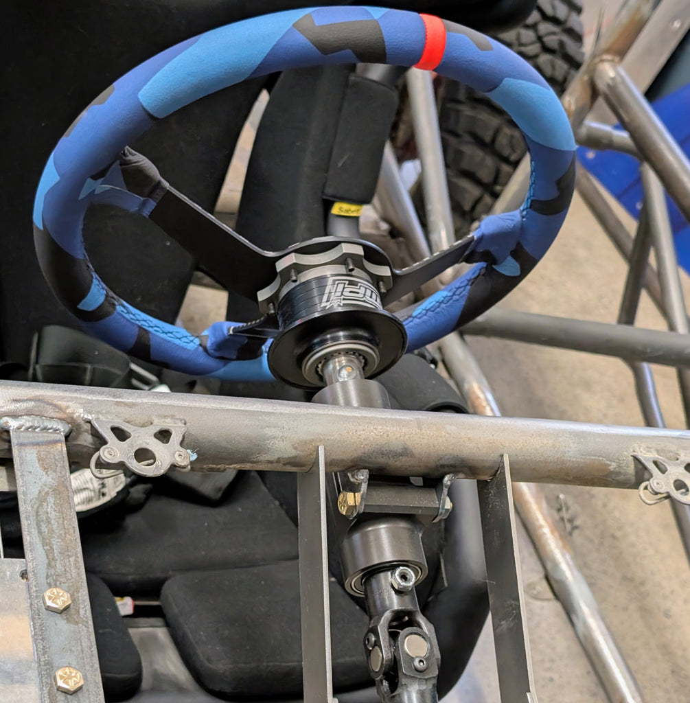 Simplify your build with our rugged, compact steering column assembly. Designed with safety and serviceability in mind, this compact bearing block supports a 3/4" diameter steering column shaft (not included) with dual ball bearings and weld-on mounting tabs for 1.5" or 1.75" tubing.