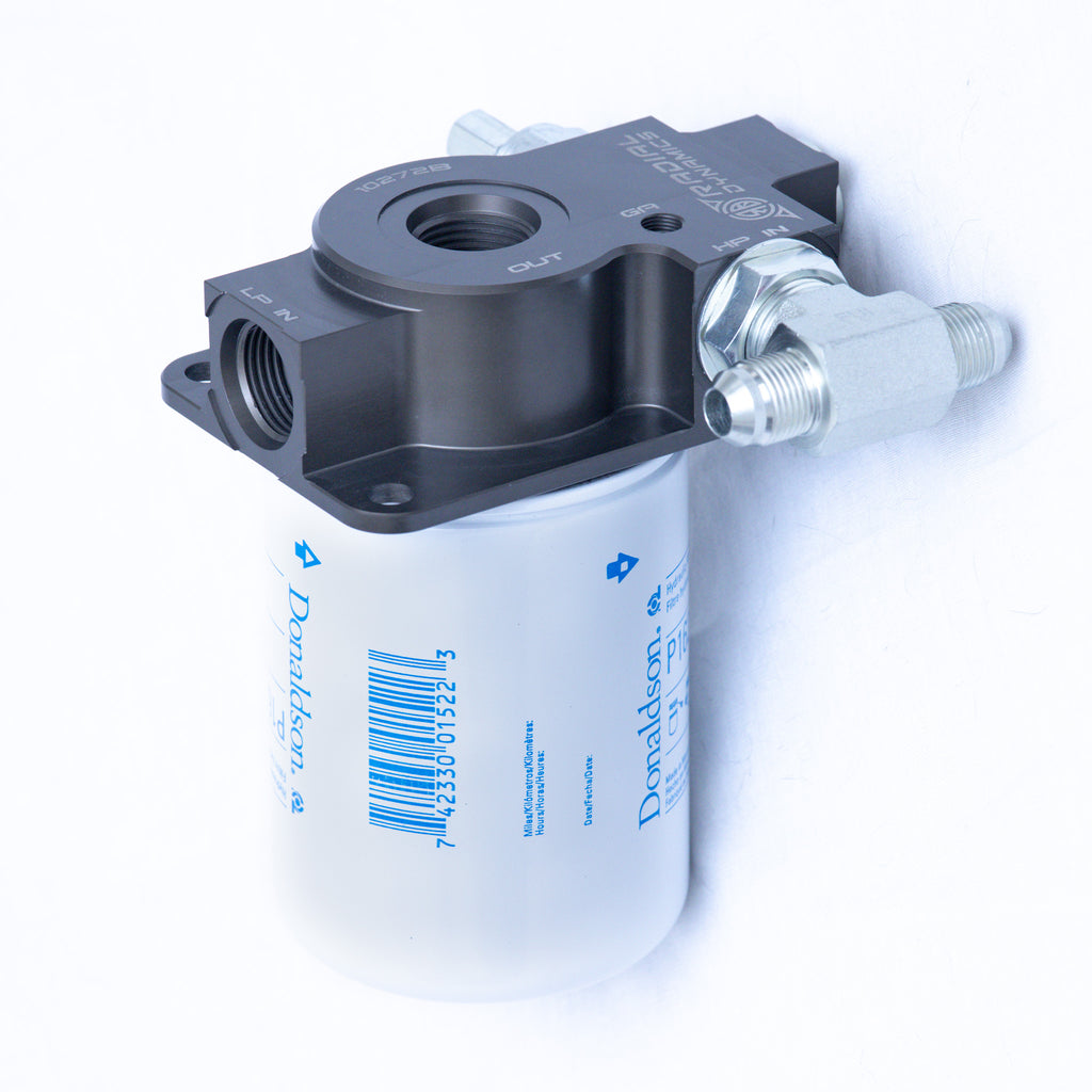 For critical applications, a Heavy Duty filter upgrade is available which replaces the standard 150 PSI rated Donaldson Filter with a medium-pressure 500 PSI rated spin-on element and matching larger diameter threaded coupler.